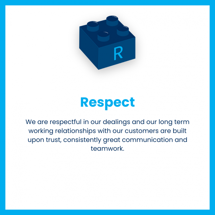 We are respectful in our dealings and our long term working relationships with our customers are built upon trust, consistently great communication and teamwork.