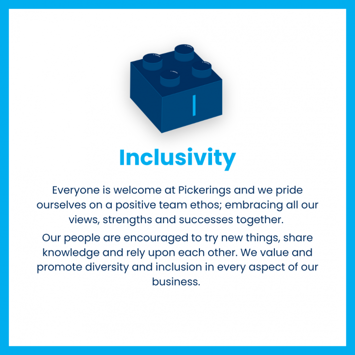 Everyone is welcome at Pickerings and we pride ourselves on a positive team ethos; embracing all our views, strengths and successes together.