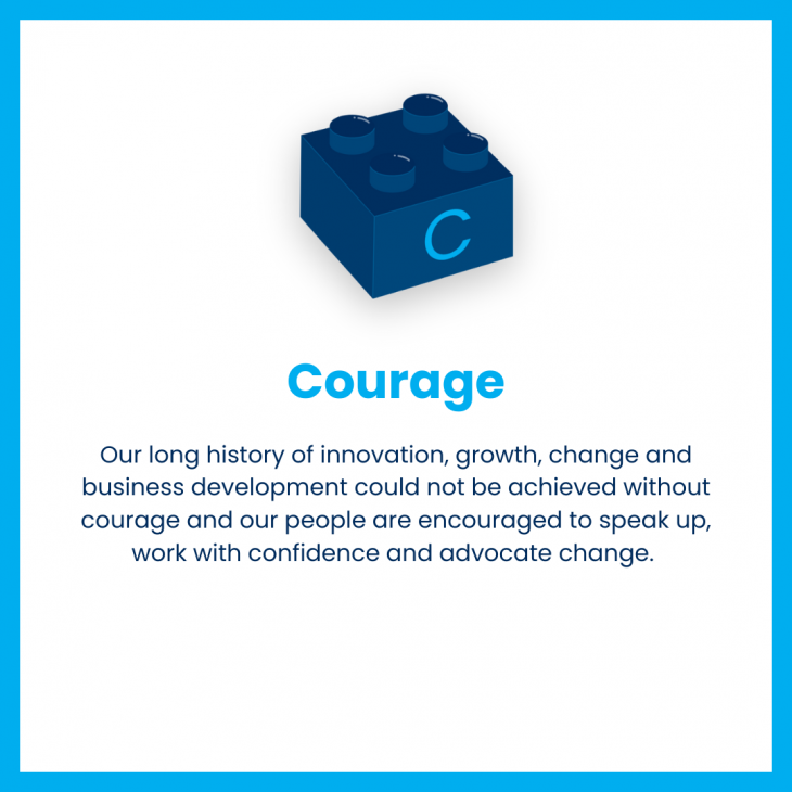Our long history of innovation, growth, change and business development could not be achieved without courage and our people are encouraged to speak up, work with confidence and advocate change.